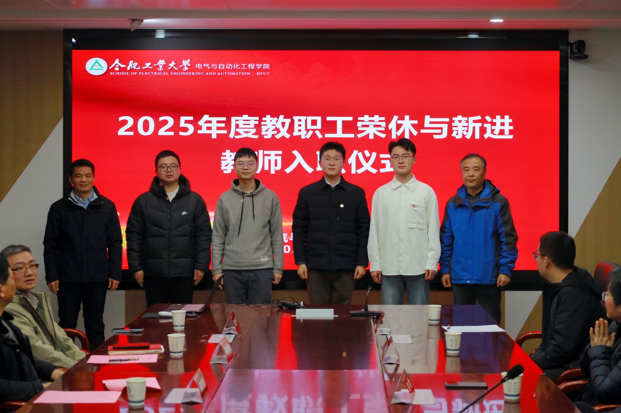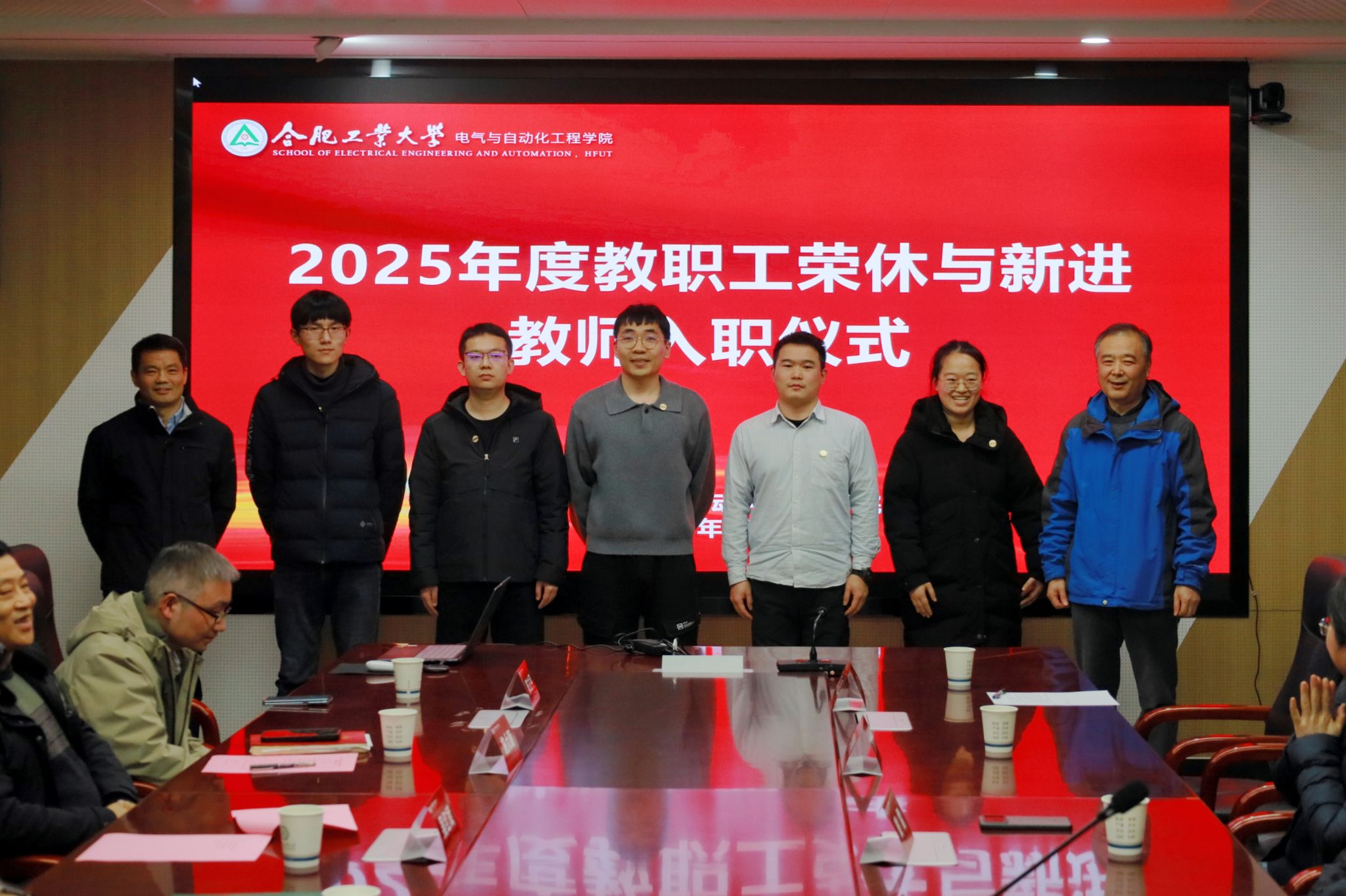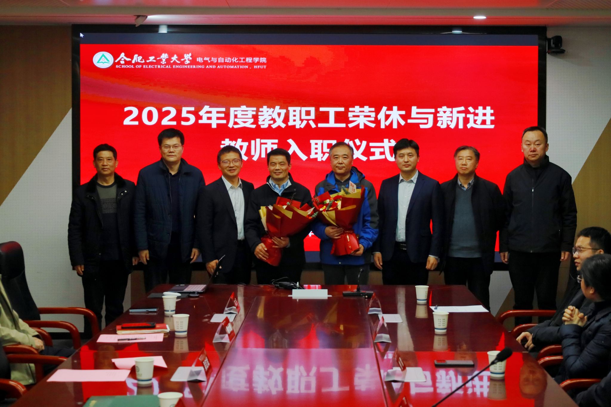 12月31日下午,电气与自动化工程学院在逸夫楼1009会议室举行2025年度教职工荣休暨新教职工入职仪式。学院领导班子、各系(中心)负责人、2025年退休职工及新入职青年教师出席活动。