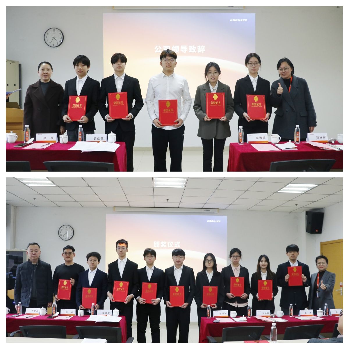 与会领导老师为到场所有获奖学生颁奖。董佳泽作为学生代表对学校的悉心培养和科大智能的资助表示衷心感谢,并分享了自己的学习经验。仪式前,全体师生参观了企业展厅、智能产线及实训室,对新型智能化工厂产品加工、检测等有了更深刻的认识。