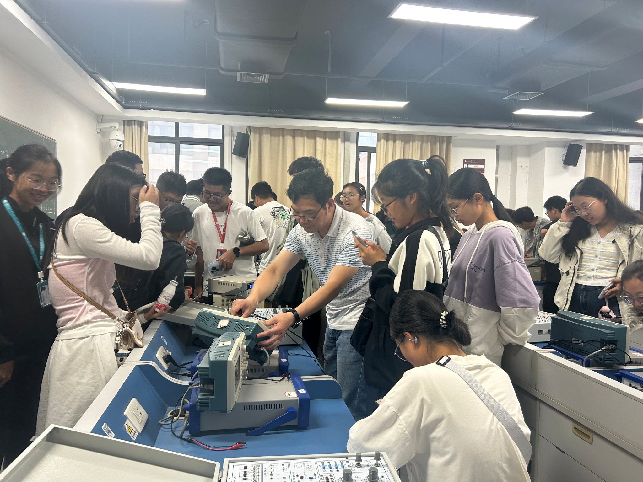 创新第一课:链接行业前沿,深化专业认知。为在新生心中埋下创新的种子,9月20日,学院组织新生集中观看中国电工技术学会“2025开学第一课”科普公益活动。分批次组织全体新生参观电工电子实验室,在了解实验设备和实验成果的过程中,激发科技创新热情与工业报国志向。