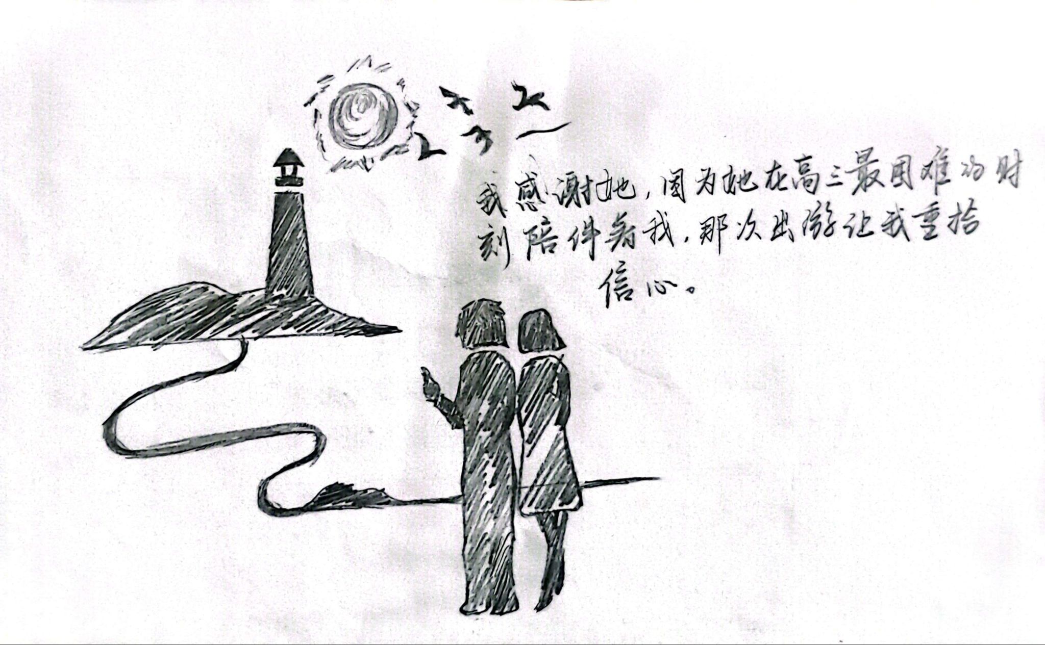 同学们在书信中回忆起在高三备考时父母深夜递上的一杯热牛奶,在照片里定格下那张陪伴过迷茫与焦虑的家乡老街,在画作旁写下“我感谢她,因为她是最最年轻可爱的妈妈”。这些作品或质朴,或巧思,都饱含真情的表达出对父母和师长的感谢,不仅是对过往温情的回应,也是新生们开启大学生活的心情守护和纪念。