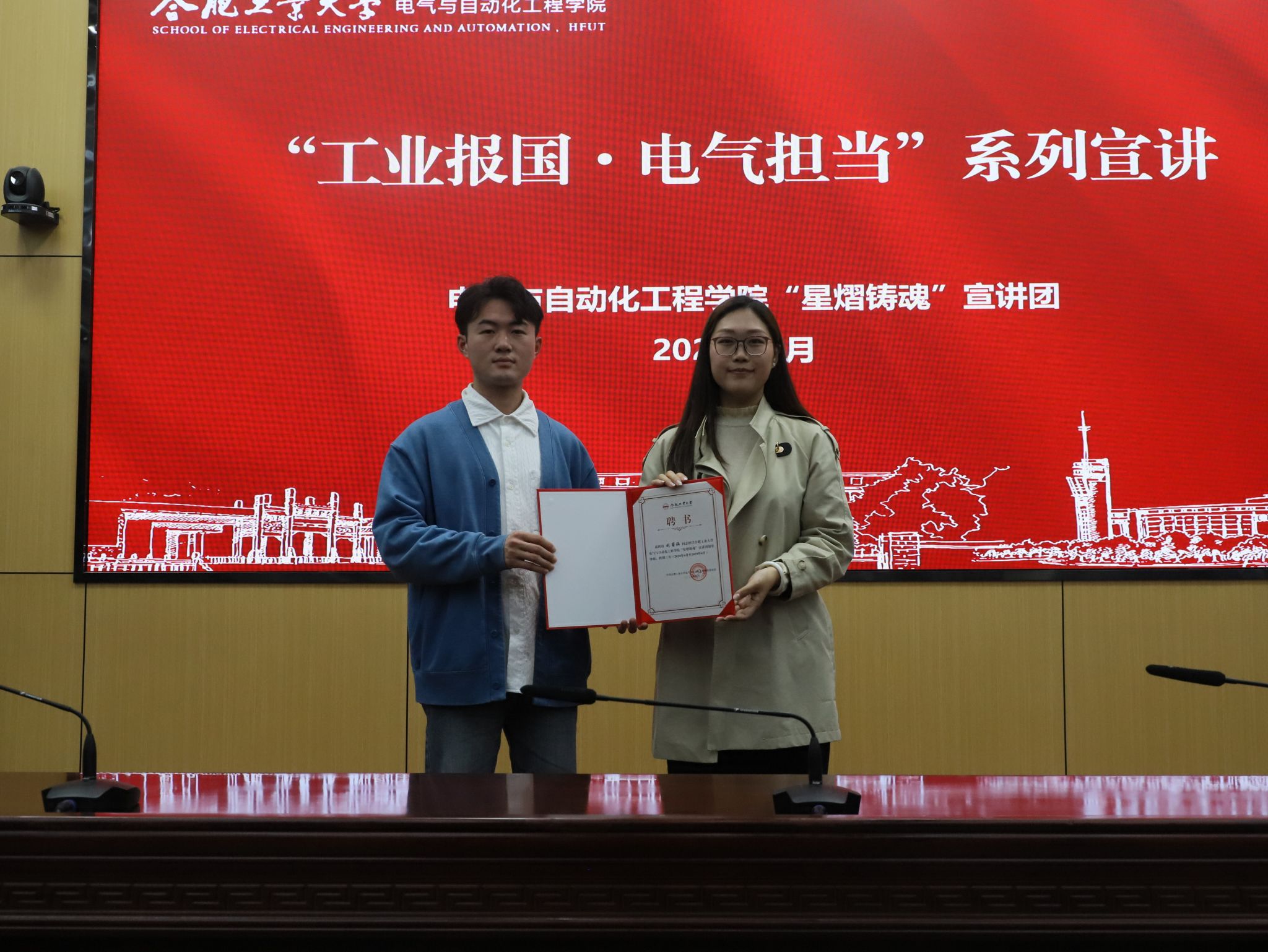 4月8日下午,电气与自动化工程学院“星熠铸魂”宣讲团“工业报国・电气担当”主题系列宣讲暨结对宣讲交流座谈会在屯溪路校区学术会议中心举行。活动邀请郑州大学博士生宣讲团成员来校开展结对宣讲与分享交流,学院分党校相关负责老师、各学生党支部党员代表及分党校第二十二期大学生入党积极分子班全体学员参与本次活动。